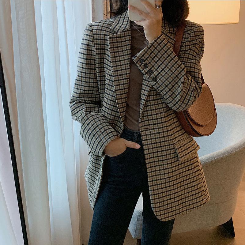 Amazon Zhongjue ジュージェン レディース テーラード ジャケット チェック柄 クラッシク ジャケット ゆったり カジュアル 韓国系 レトロ フェミニン アウター スーツ ジャケット 長袖 ジャケット 春 秋 コーヒー コート ジャケット 通販